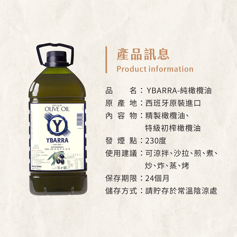 品名 : YBARRA 純橄欖油 3000ml