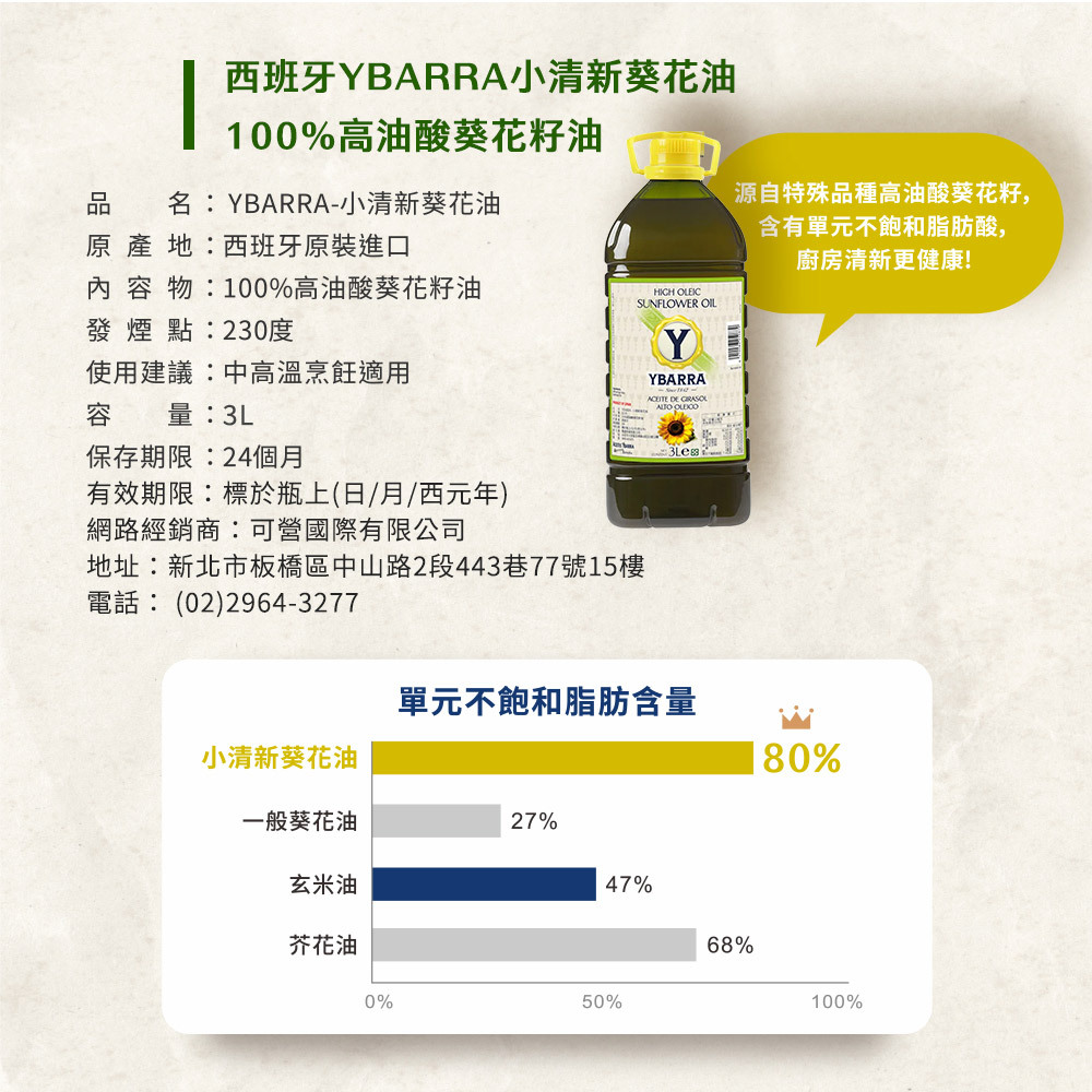 內容物成分(如含有豬、牛成分請加註國別):100%高油酸葵花籽油